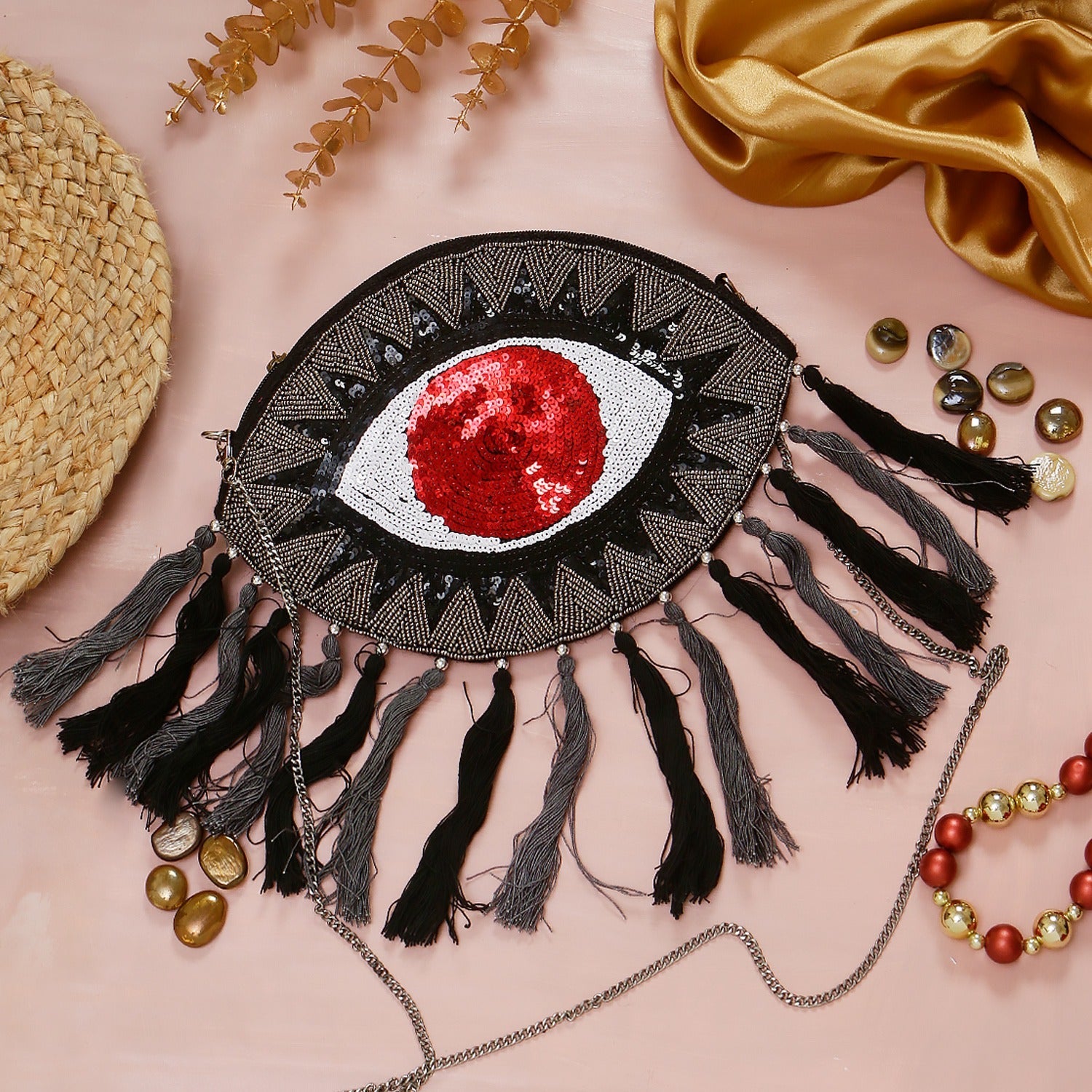 Boho Red Evil Eye Bag