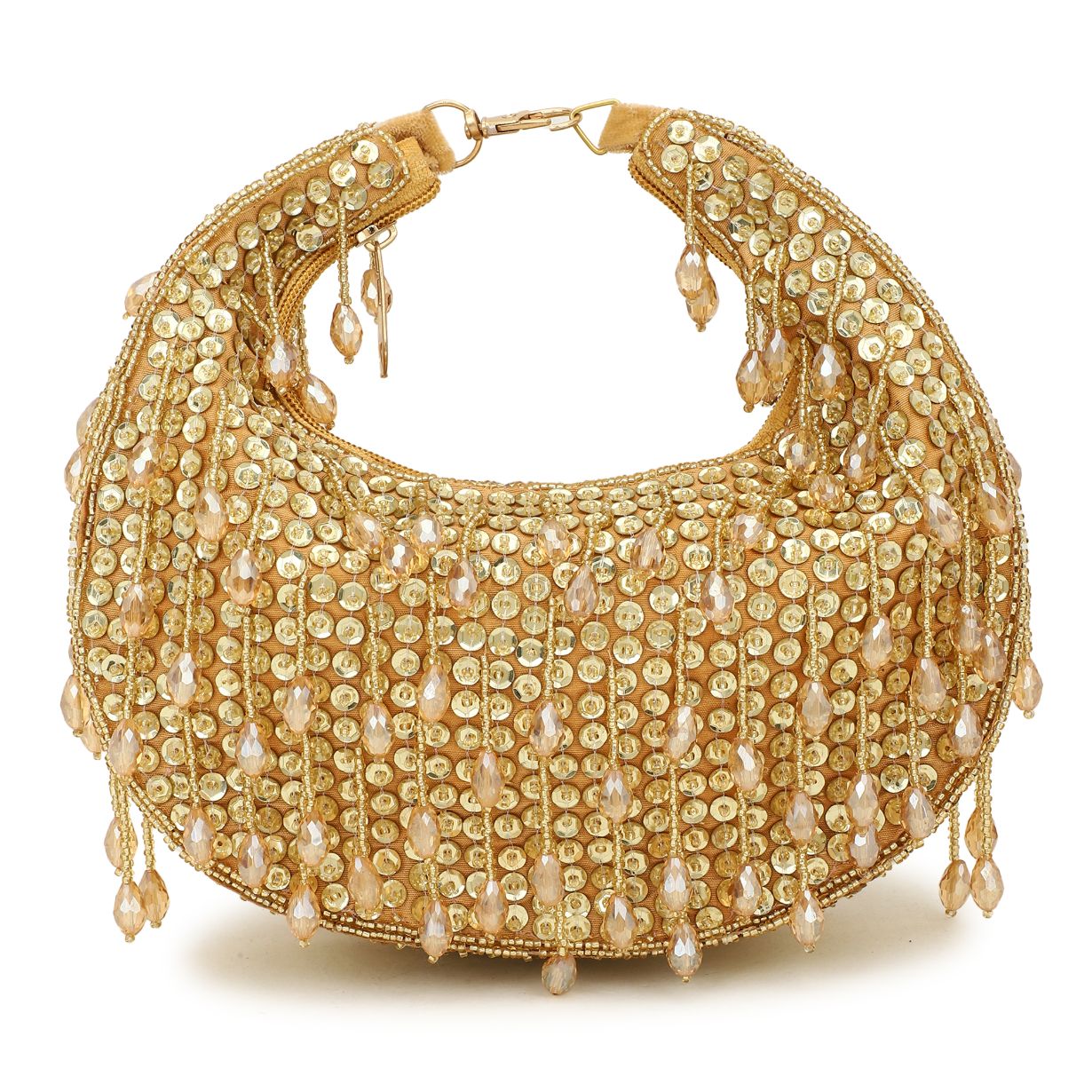 Designer Luxury Golden Drop Bead Embroidery Handbag