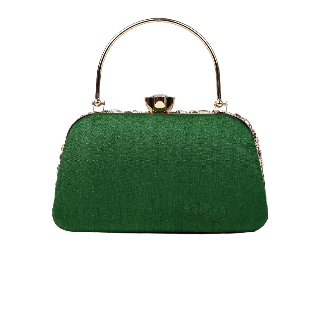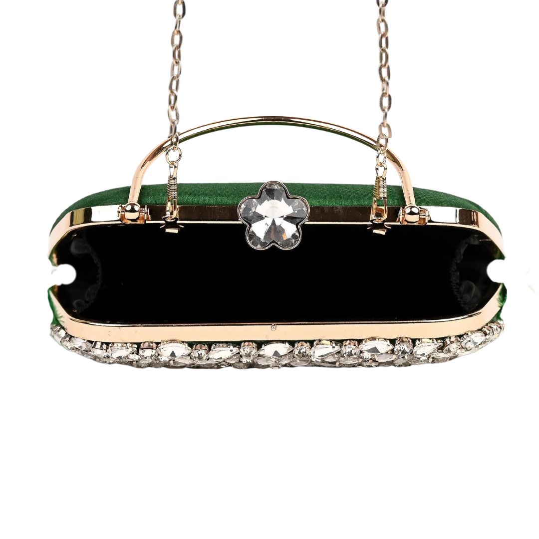 Feather Green Crystal Embellished Party Clutch Bag