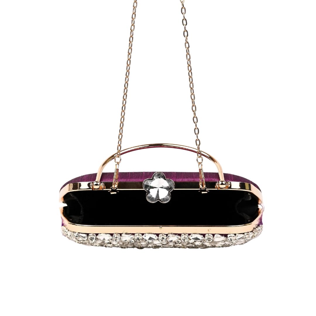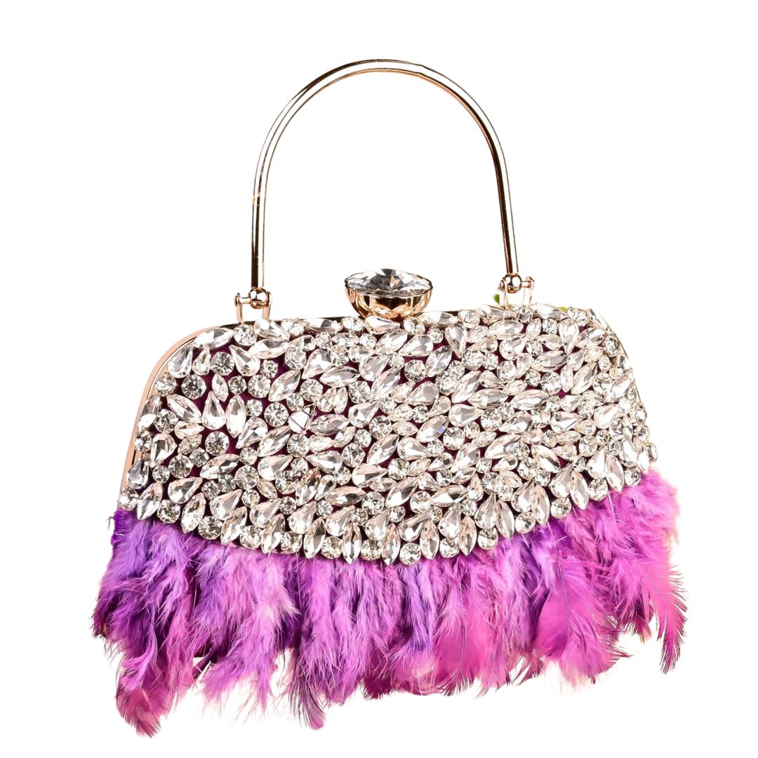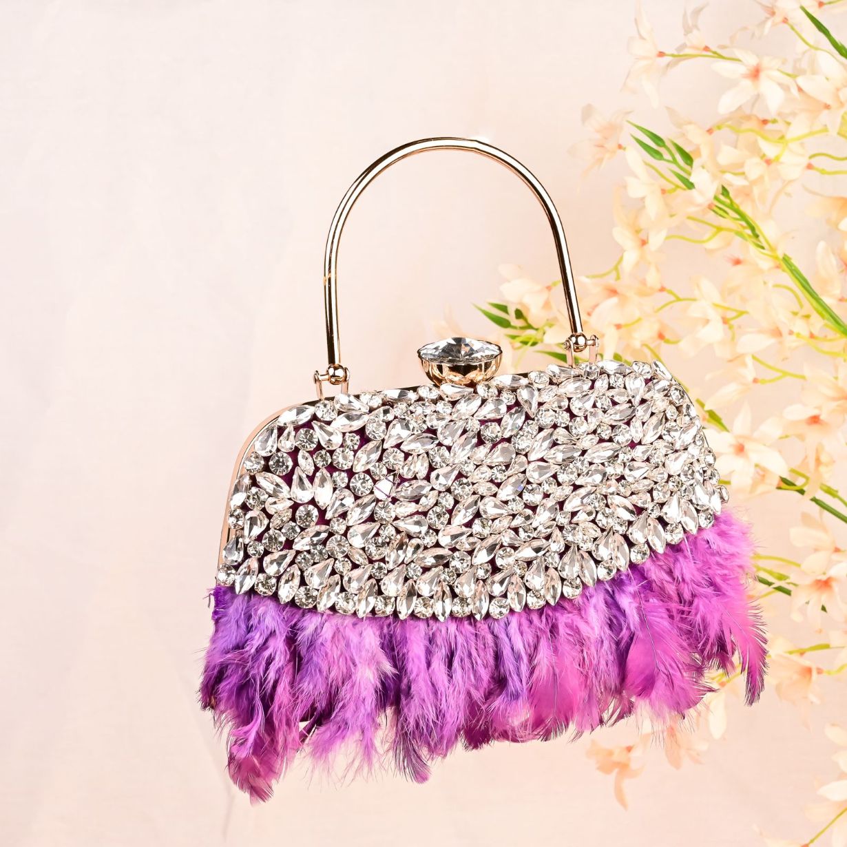Elevate your evening outfit with the stunning Purple Toned Crystal Beaded Clutch Bag, a true masterpiece of beauty and sophistication. This magnificent handbag is sure to turn heads with its unusual combination of sparkling crystals and fun purple feathers, making it an ideal accessory for weddings, parties, galas, and other special occasions.