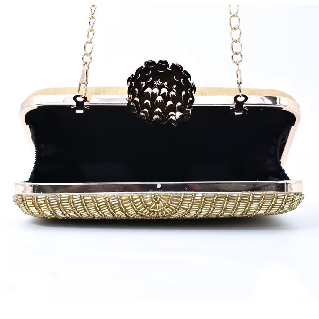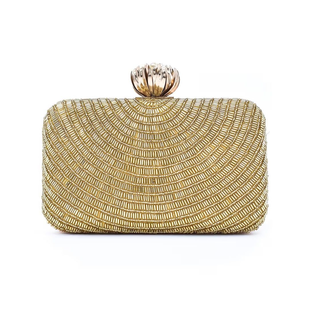 Golden Bead Embroidery Party Clutch Bag for Women