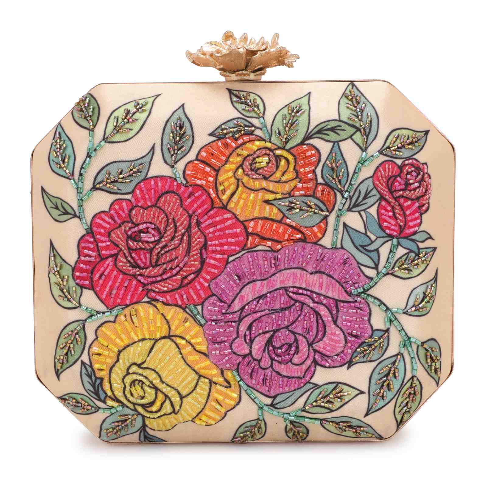 The gorgeous embroidered clutch bag will elegantly elevate your entire appearance. Pair this vibrant clutch with any outfit for a pop of color & step out in style.