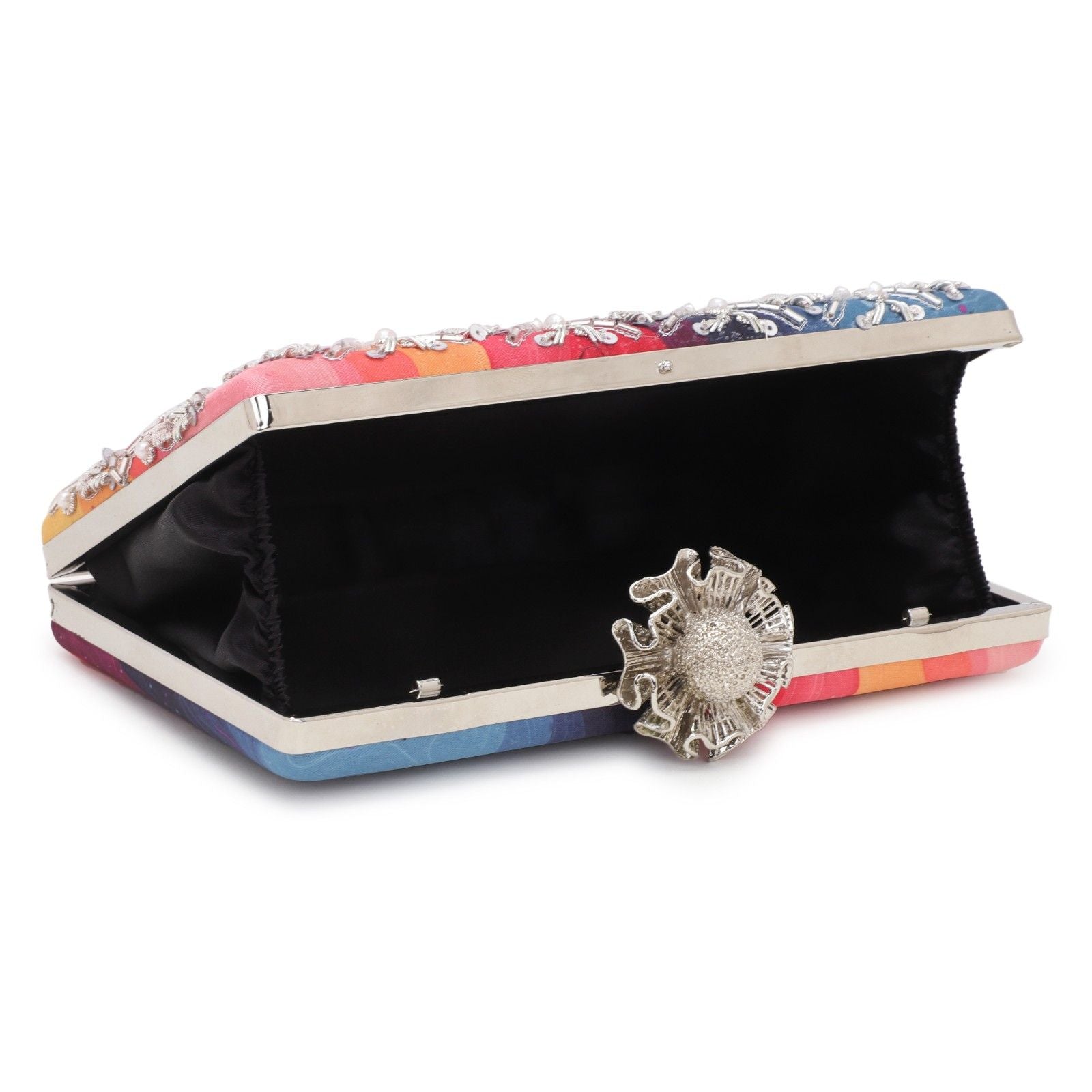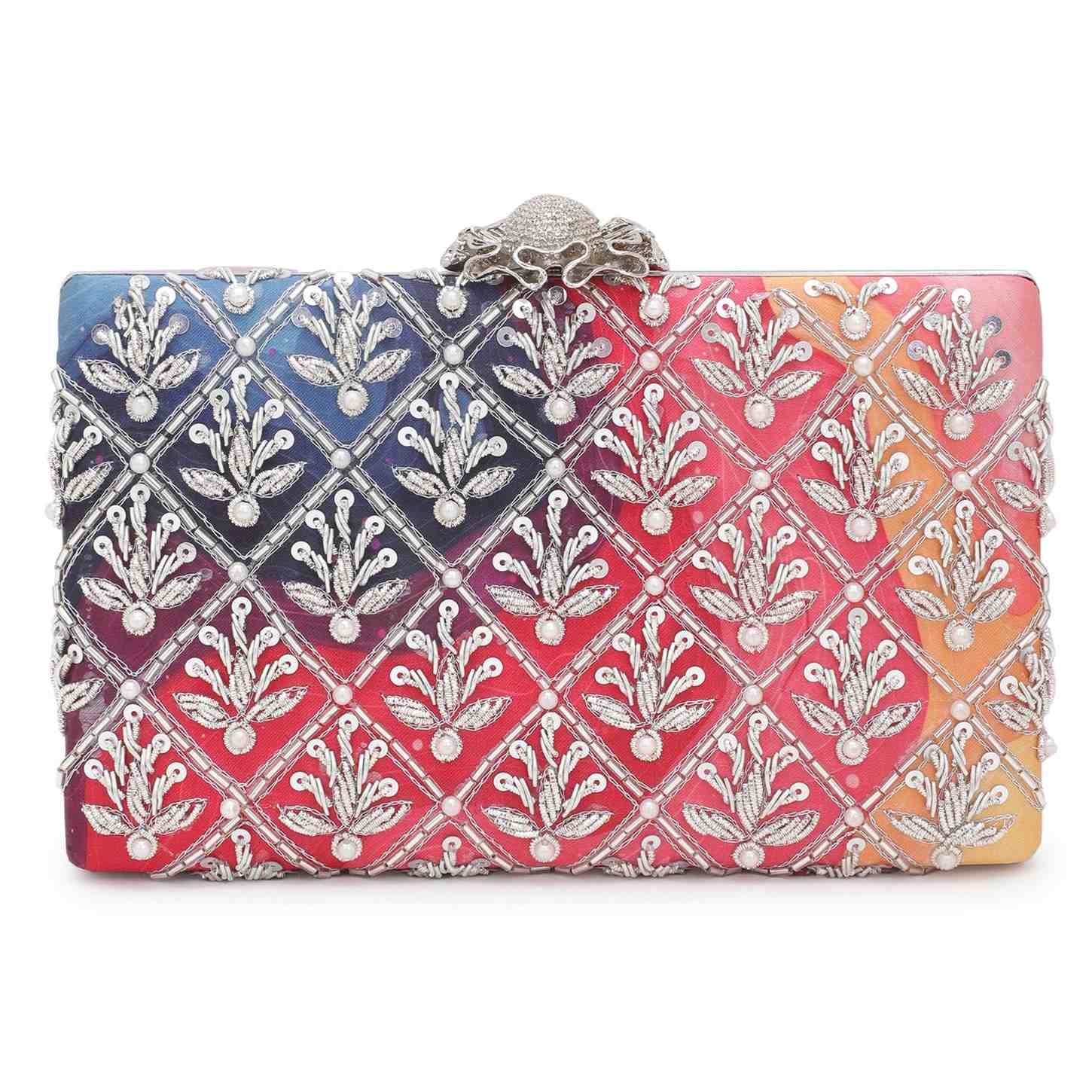 The gorgeous embroidered clutch bag will elegantly elevate your entire appearance. Pair this vibrant clutch with any outfit for a pop of color & step out in style.